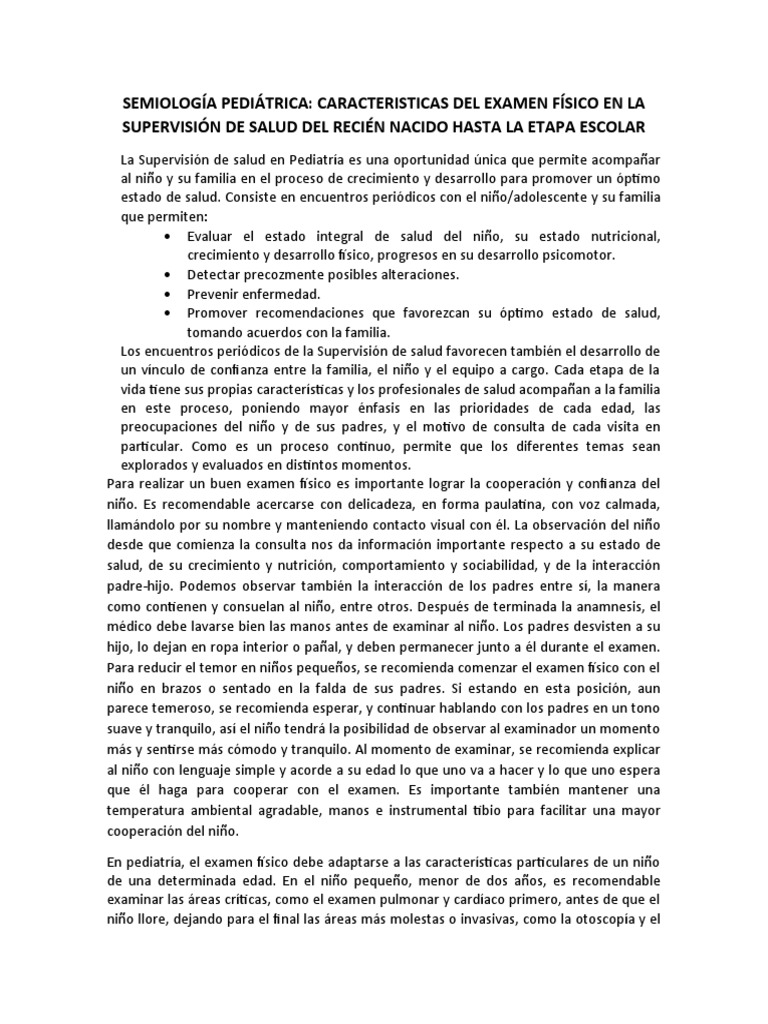 salud de niños mayores de 5 años y adolescentes, el examen físico se realiza en forma