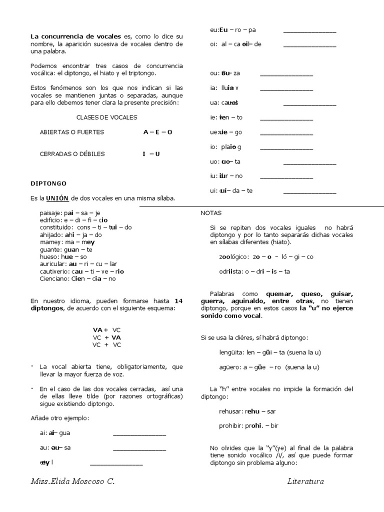 vocálica: el diptongo, el hiato y el triptongo. ou: S