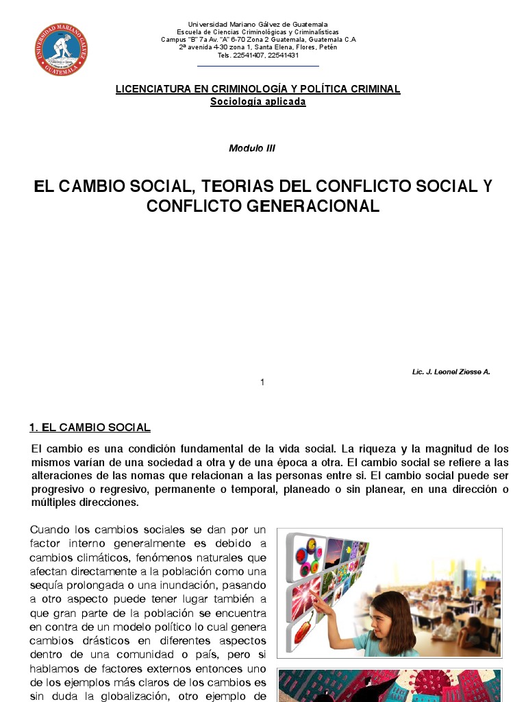 EL CAMBIO SOCIAL, TEORIAS DEL CONFLICTO SOCIAL Y
