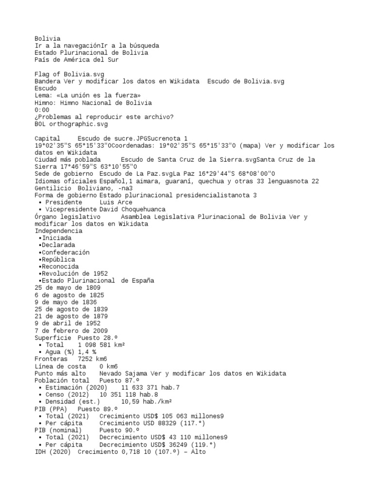 Proyectos WikimediaWd Datos: Q750Commonscat Multimedia: BoliviaWikivoyage Guía