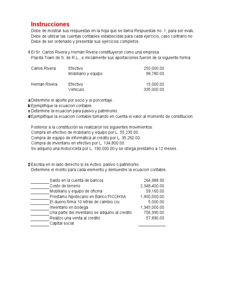 2 Escriba en el lado derecho si es Activo, pasivo o patrimonio.