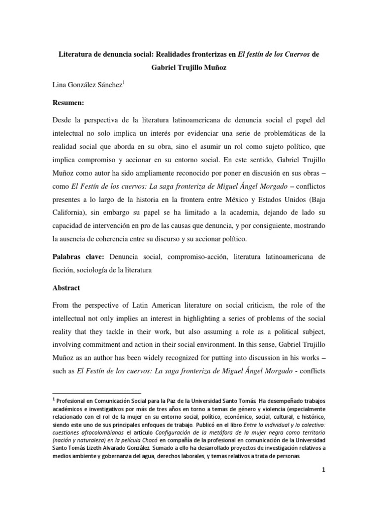 denuncia social se tiene en cuenta que como autor, Gabriel Trujillo Muñoz, si bien presenta