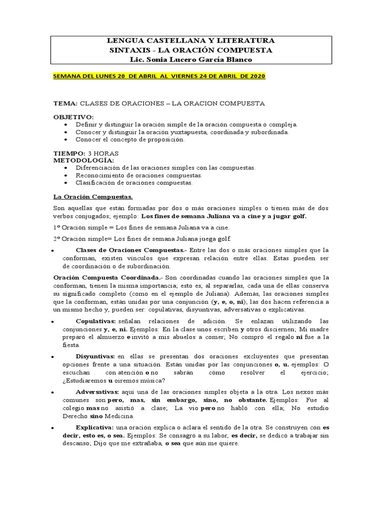 oraciones simples que las conforman.