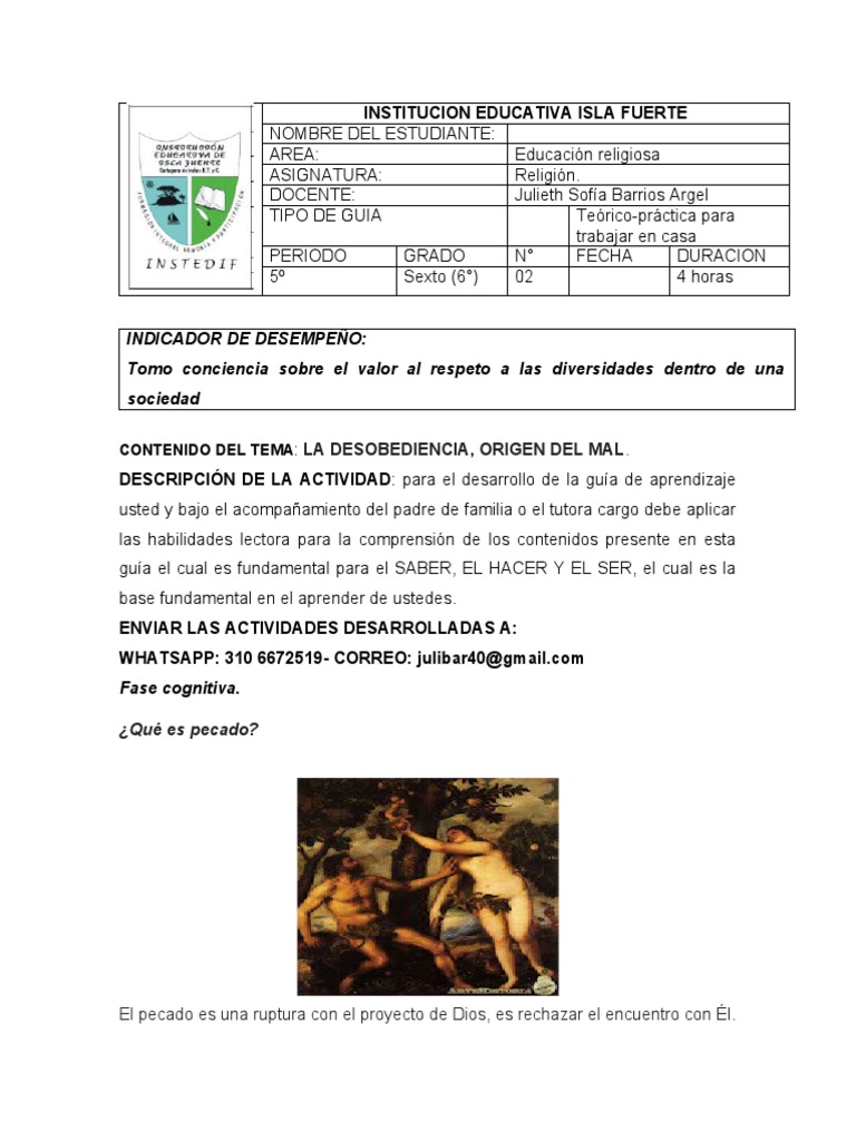 CONTENIDO DEL TEMA: LA DESOBEDIENCIA, ORIGEN DEL MAL.