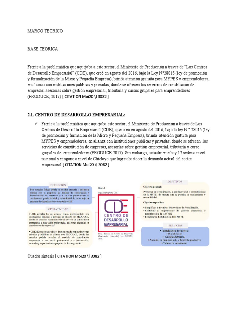 de Desarrollo Empresarial” (CDE), que creó en agosto del 2016, bajo la Ley N°28015 (ley de promoción