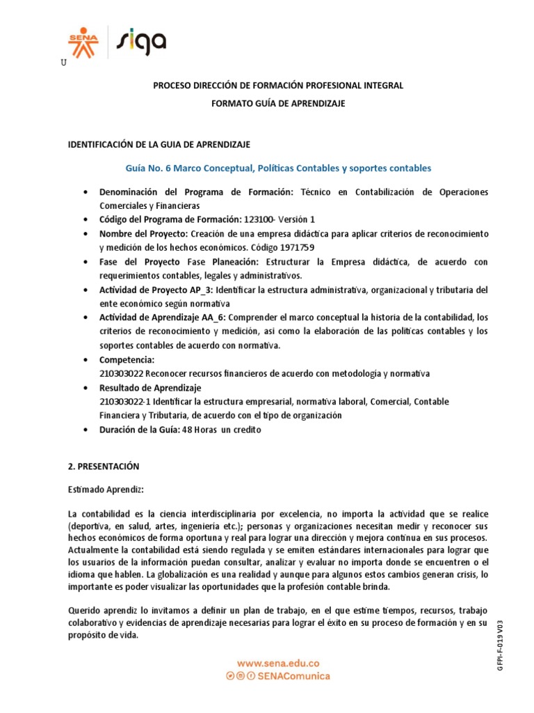 Guía No. 6 Marco Conceptual, Políticas Contables y soportes contables
