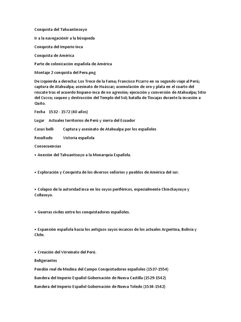 del Cuzco; saqueo y destrucción del Templo del Sol; batalla de Tiocajas durante la invasión a