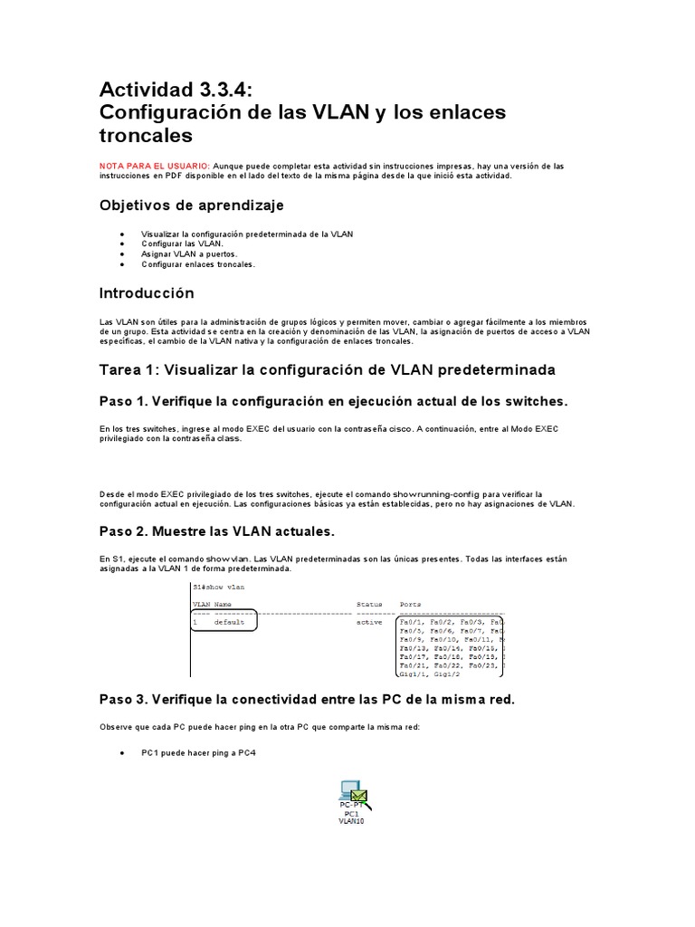 de un grupo. Esta actividad se centra en la creación y denominación de las VLAN, la asignación de puertos de acceso a VLAN