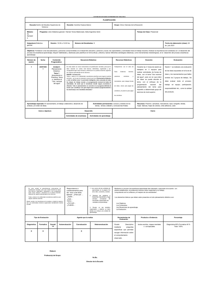 1 24/07/202 Unidad 3 En esta sesión se veran instrumentos de planificación sencillos, para que la Trabajaremos con el Libro de Durante las 2 horas de sesión se Sesión 1 se realizara una evaluación