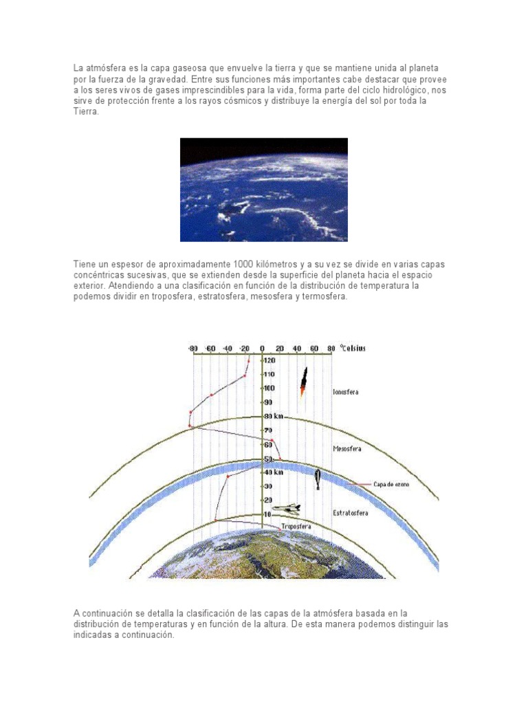 A continuación se detalla la clasificación de las capas de la atmósfera basada en la