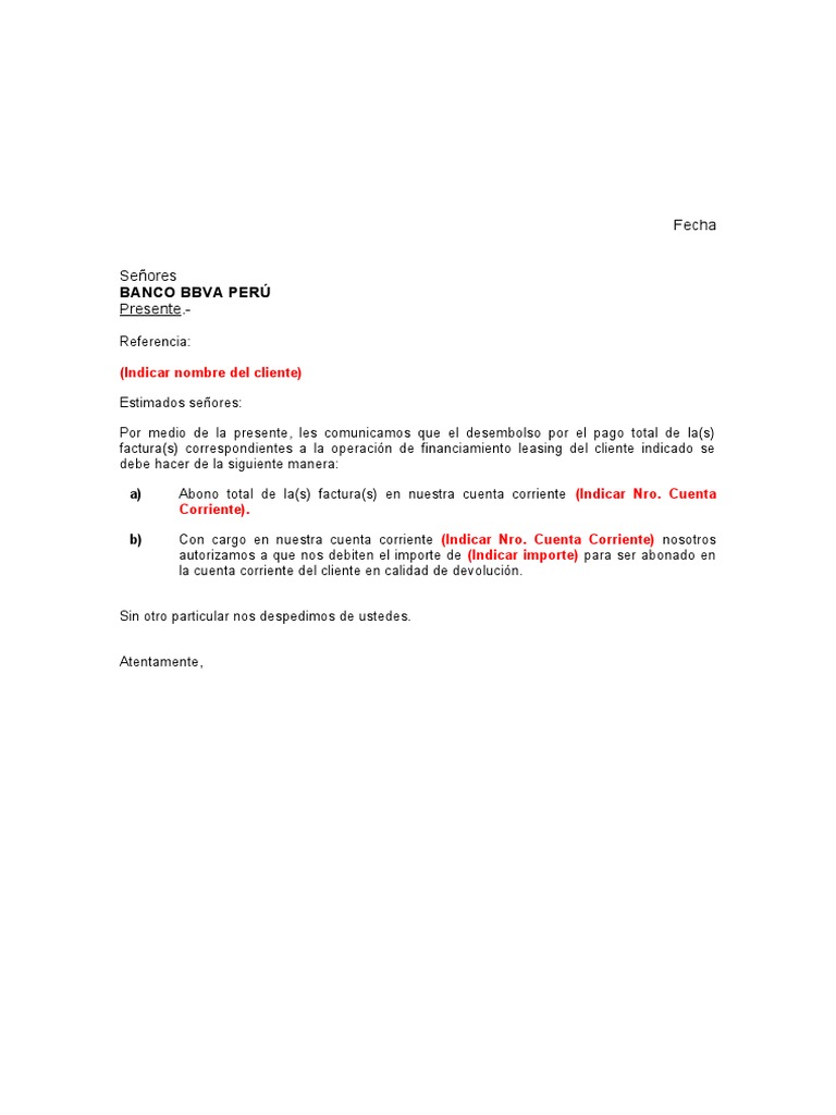 autorizamos a que nos debiten el importe de (Indicar importe) para ser abonado en