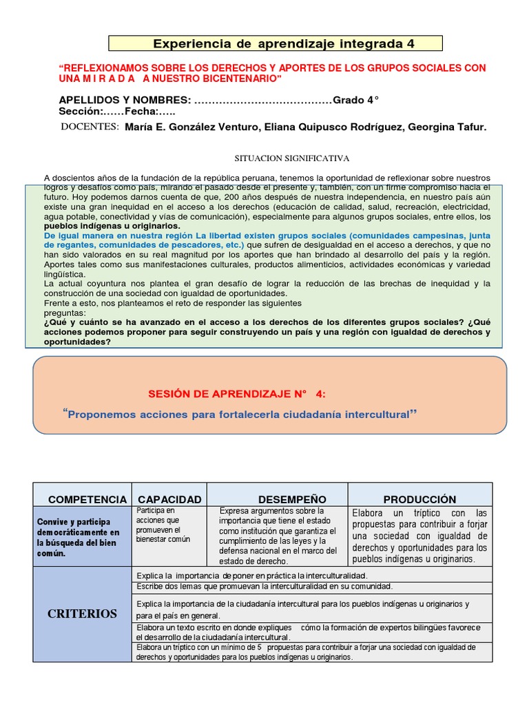 DOCENTES: María E. González Venturo, Eliana Quipusco Rodríguez, Georgina Tafur.