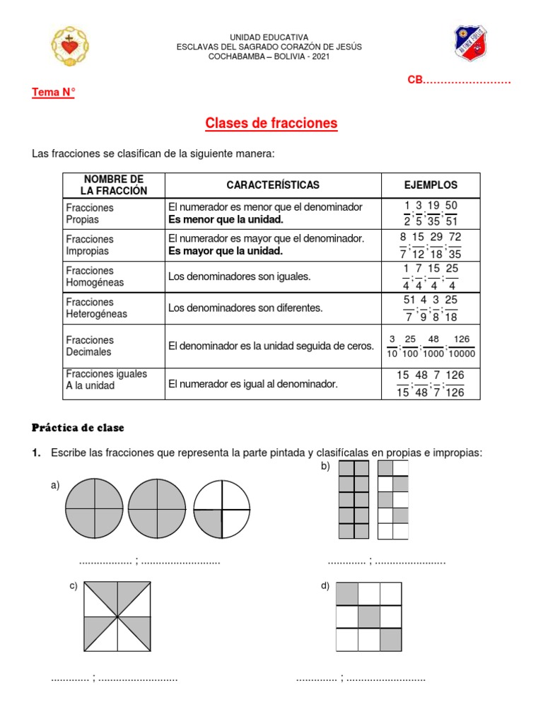 b) Impropias, propias, decimal d) N.A.