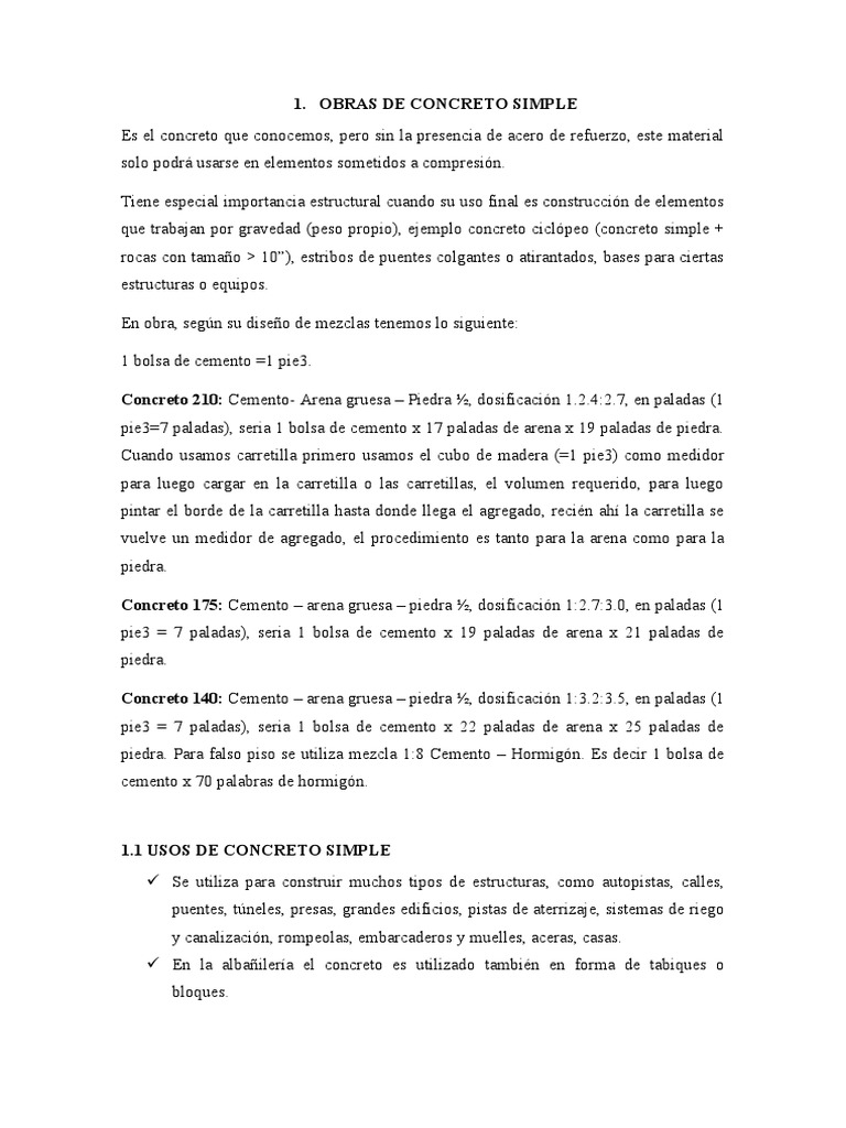1.1 USOS DE CONCRETO SIMPLE
