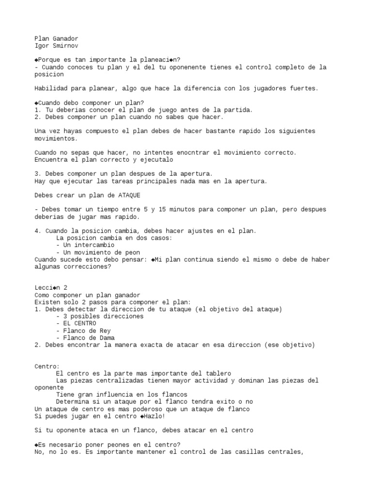 1. Tu deberias conocer el plan de juego antes de la partida.
