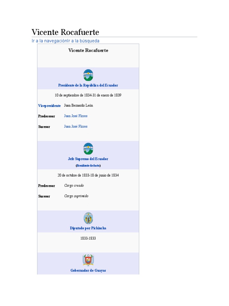con su política.5 Tras su mandato entre 1835-1839, fue gobernador de Guayaquil,