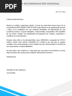 CARTA DE RECOMENDACION