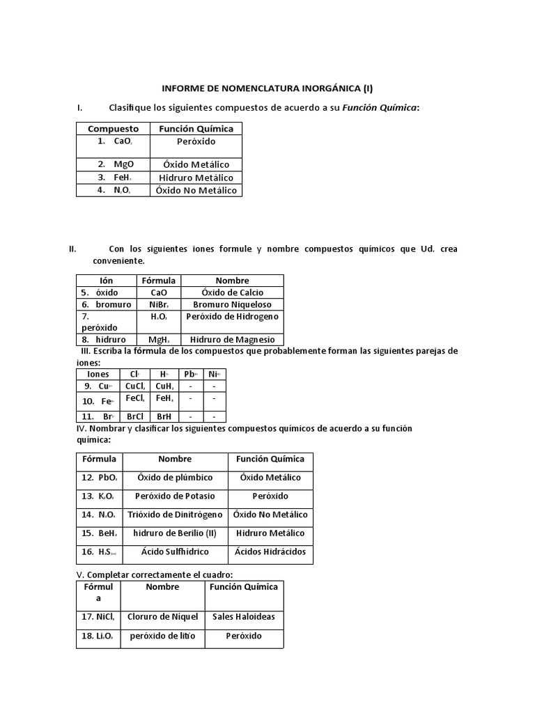 INFORME DE NOMENCLATURA INORGÁNICA (I)
