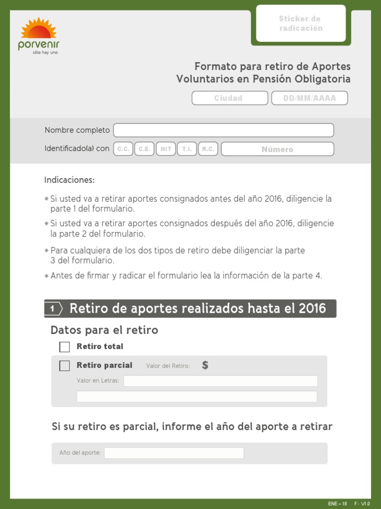 Este formato se divide en (1) retiro de aportes realizados antes del año 2016, regulados por