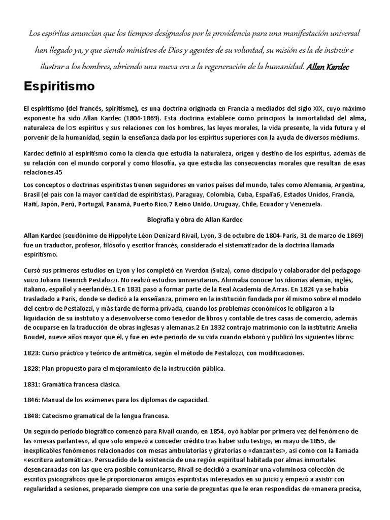 relación con el primero, Allan Kardec presentó su «nueva doctrina filosófica» como respondiendo «a las aspiraciones