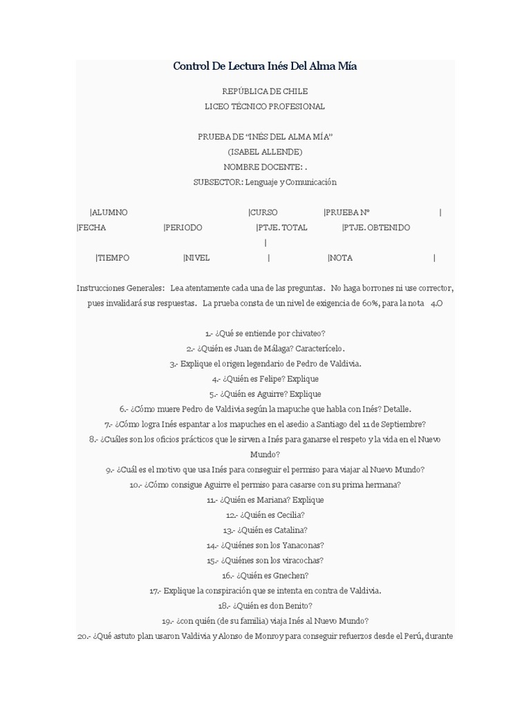 Control De Lectura Inés Del Alma Mía
