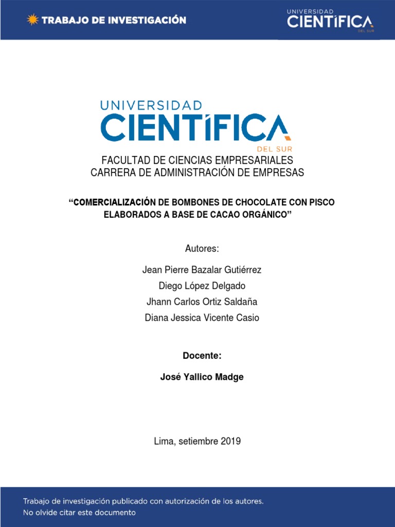 “COMERCIALIZACIÓN DE BOMBONES DE CHOCOLATE CON PISCO
