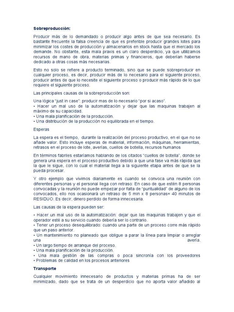 trabajo extra sobre un producto es un desperdicio que debemos eliminar, y que es uno
