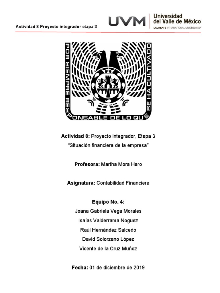 C.V., del cual se toman como base los reportes de estados consolidados de situación financiera,