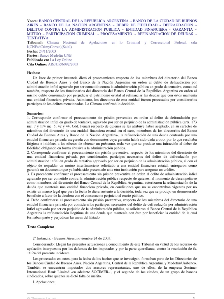 Penal de la Nación).