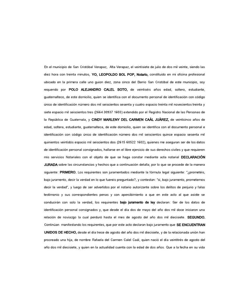 requerido por POLO ALEJANDRO CALEL SOTO, de veintiséis años edad, soltero, estudiante,