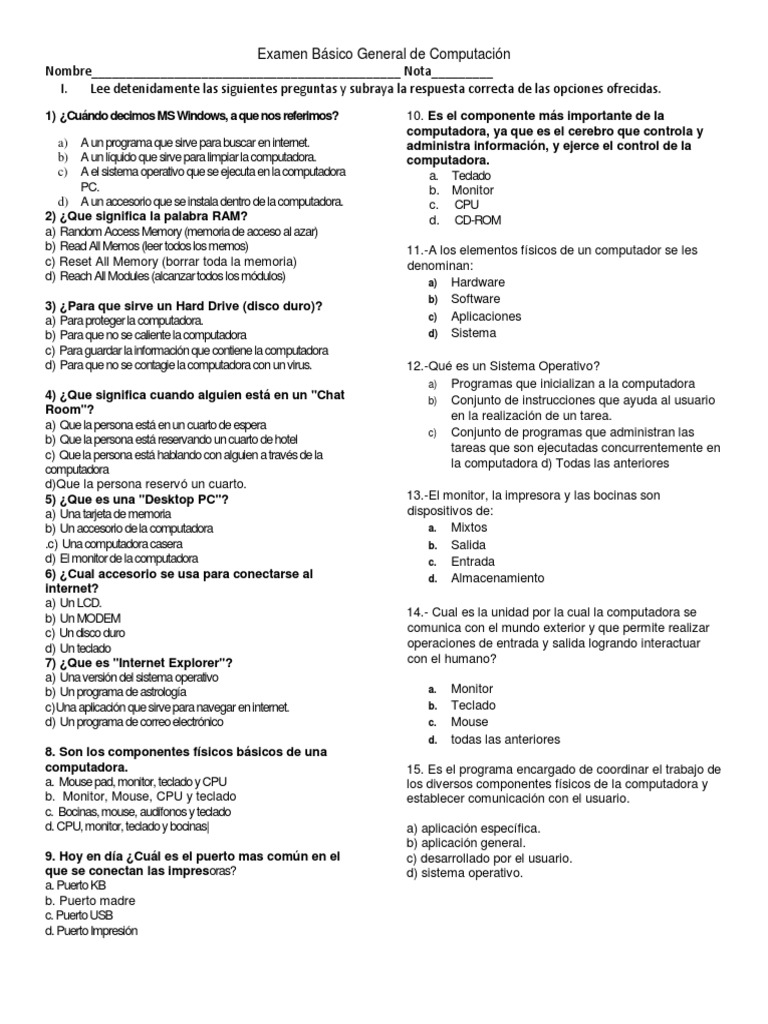 Examen Básico General de Computación