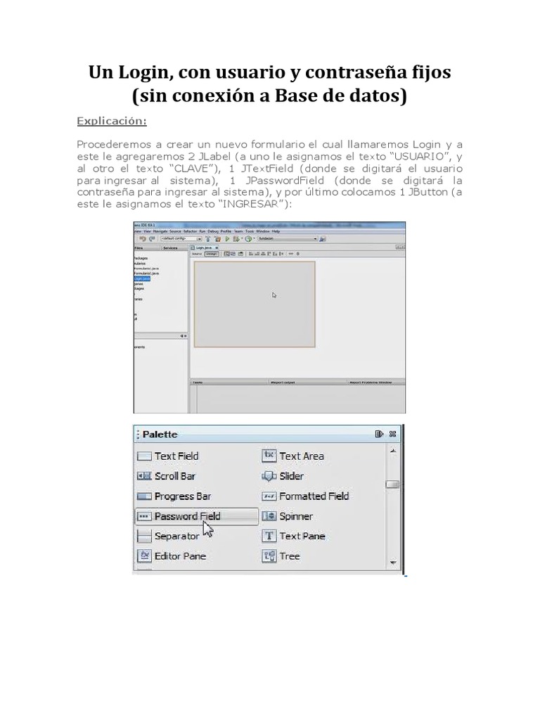 para ingresar al sistema), 1 JPasswordField (donde se digitará la