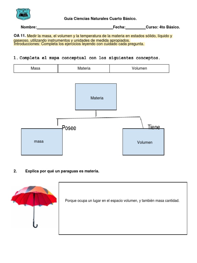 Guía Ciencias Naturales Cuarto Básico La Materia