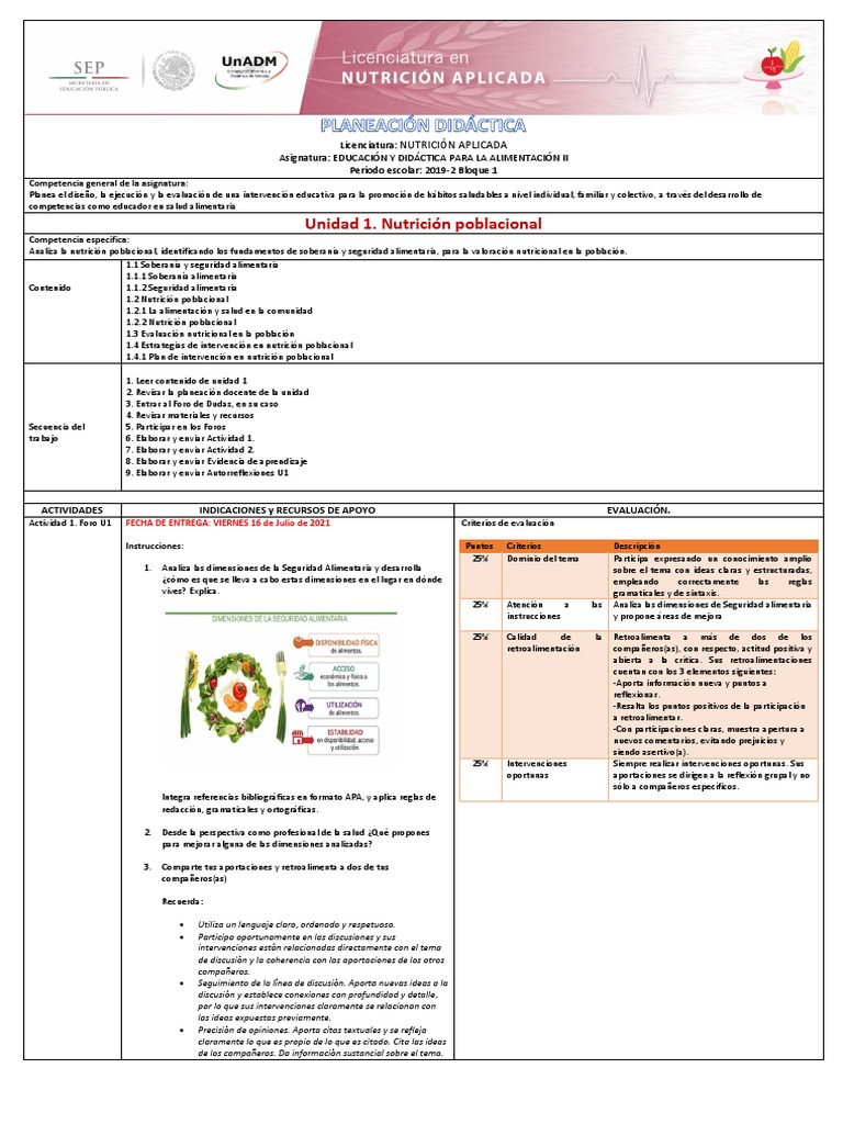 Planea el diseño, la ejecución y la evaluación de una intervención educativa para la promoción de hábitos saludables a nivel individual, familiar y colectivo, a través del desarrollo de