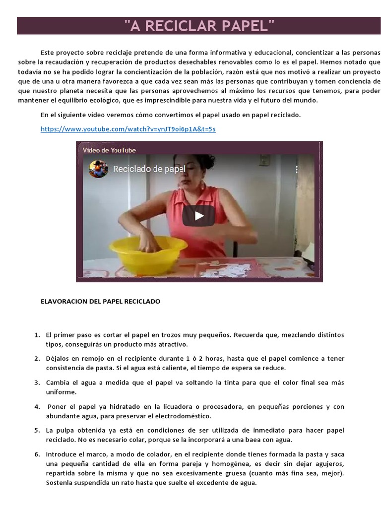 En el siguiente vídeo veremos cómo convertimos el papel usado en papel reciclado.