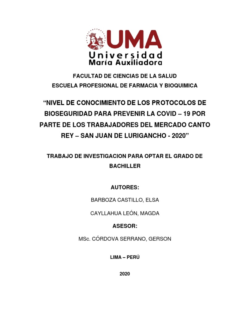 2020”.La bioseguridad es un conjunto de normas, medidas y protocolos que se