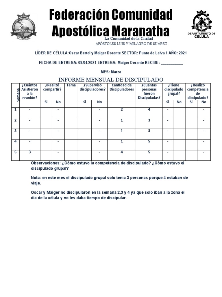 Oscar y Maiger no discipularon en la semana 2,3 y 4 ya que solo iban a la zona el