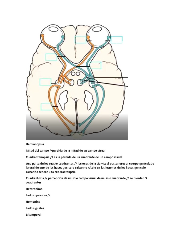 Haz geniculo calcarino superior derecho //retina temporal derecha superior y la retina nasal