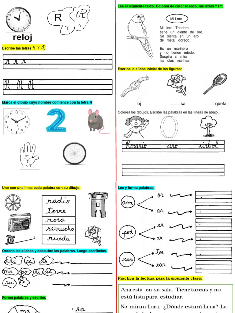 Lee el siguiente texto. Colorea de color rosado, las letras “ r “.