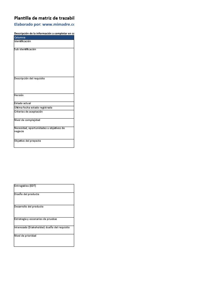 Plantilla de matriz de trazabilidad de requisitos