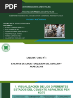 ensayos sobre muestras de cemento asfáltico.