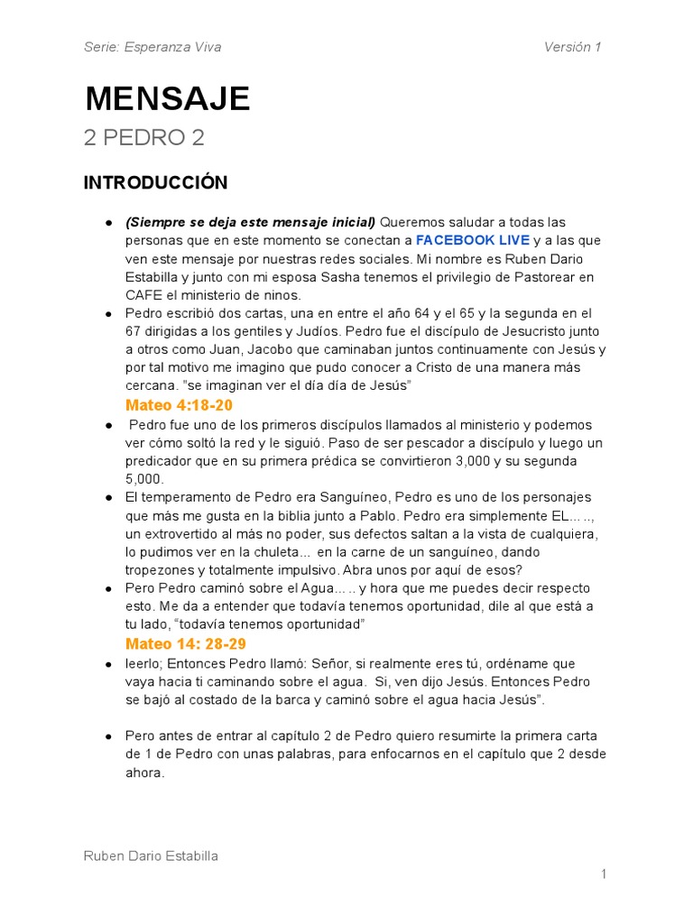 ● Pero antes de entrar al capítulo 2 de Pedro quiero resumirte la primera carta