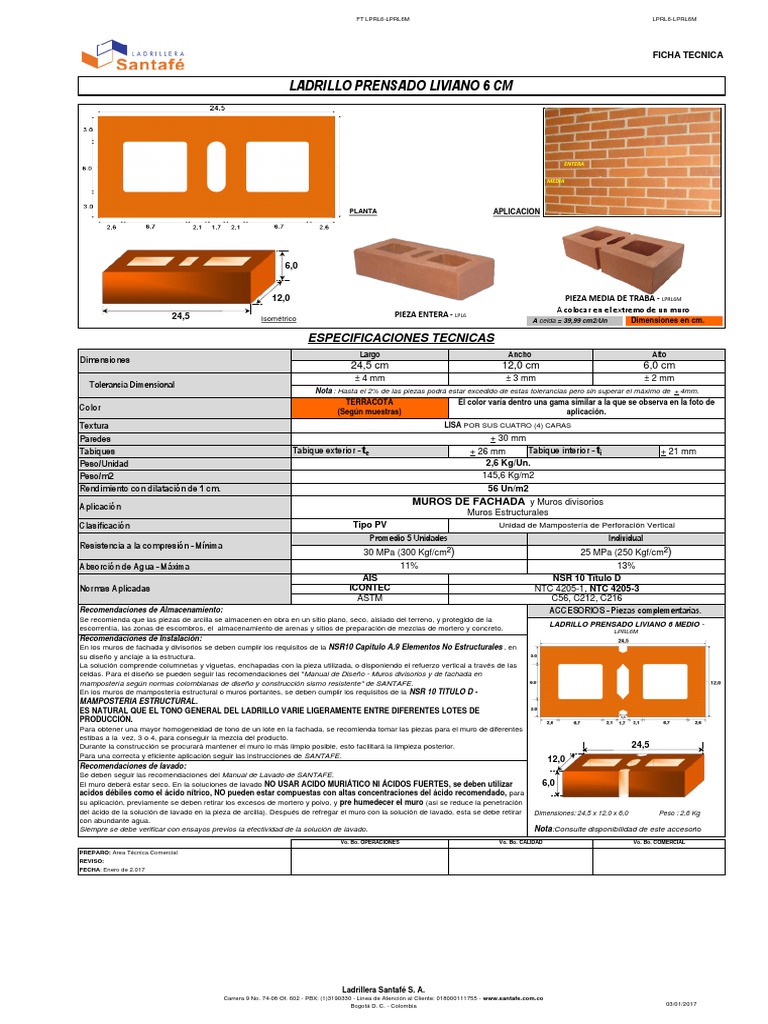 del ácido de la solución de lavado en la pieza de arcilla). Después de refregar el muro con la solución de lavado, esta se debe retirar Dimensiones: 24,5 x 12,0 x 6,0 Peso : 2,6 Kg