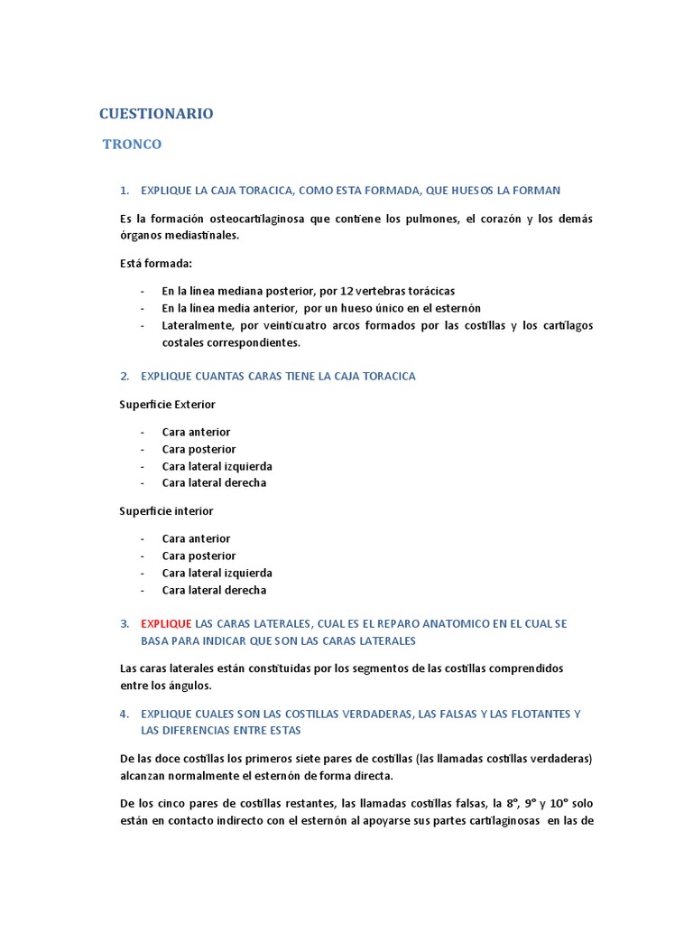 1. EXPLIQUE LA CAJA TORACICA, COMO ESTA FORMADA, QUE HUESOS LA FORMAN