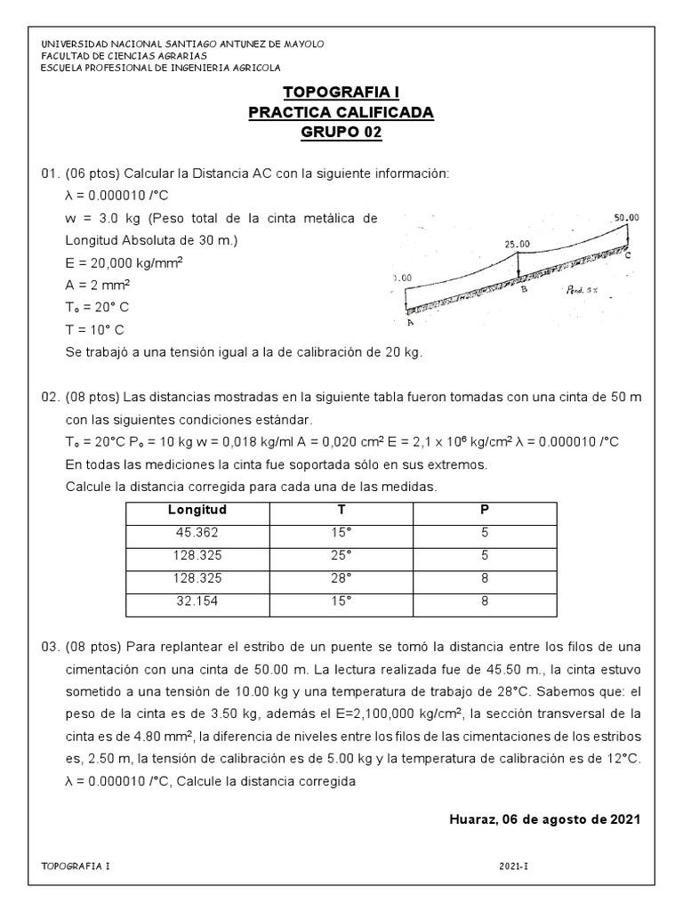 02. (08 ptos) Las distancias mostradas en la siguiente tabla fueron tomadas con una cinta de 50 m