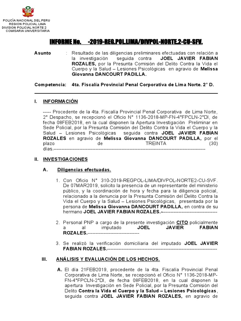 INFORME No. -2019-REG.POL.LIMA/DIVPOL-NORTE.2-CU-SFV.