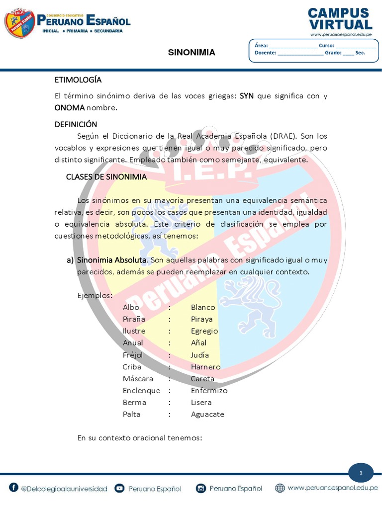 CLASES DE SINONIMIA