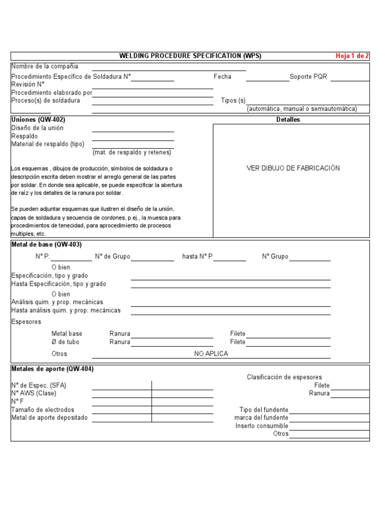 WELDING PROCEDURE SPECIFICATION (WPS) Hoja 1 de 2