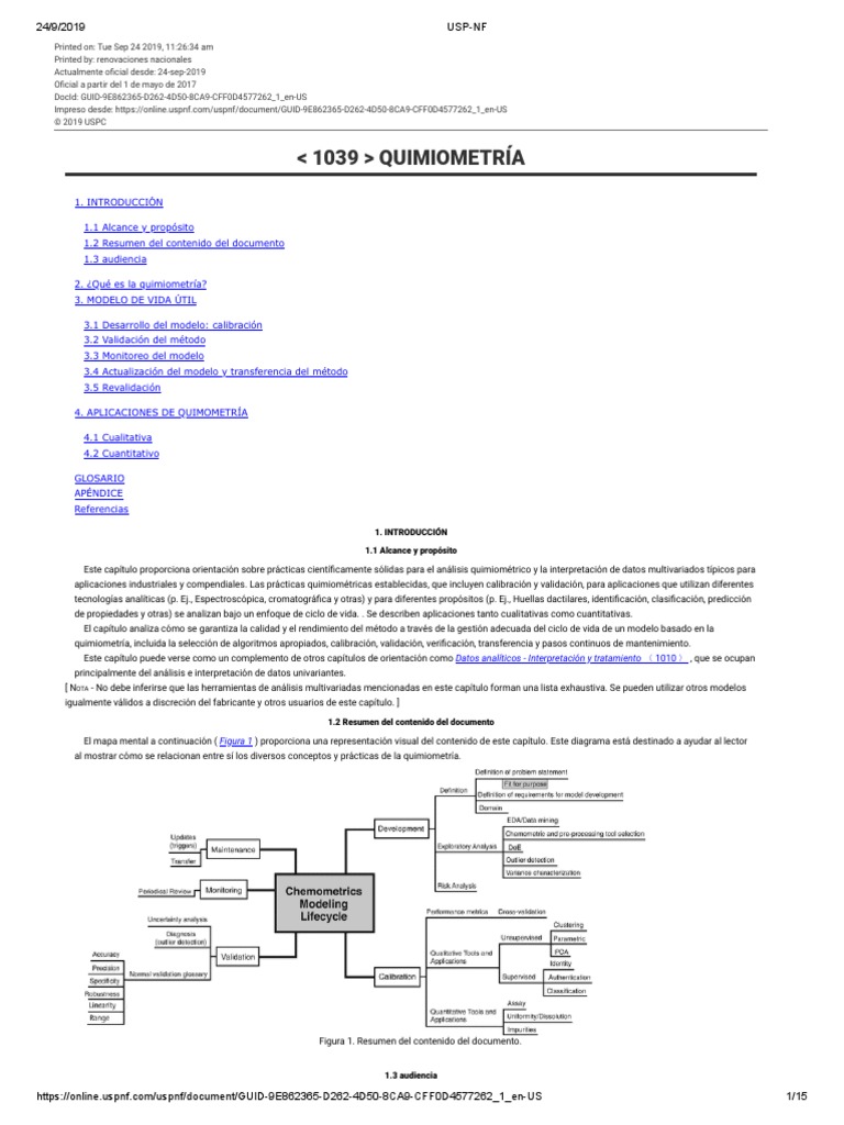 quimiometría, incluida la selección de algoritmos apropiados, calibración, validación, veri cación, transferencia y pasos continuos de mantenimiento.