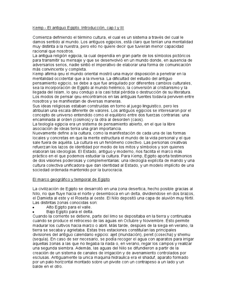 práctico en el que podemos estudiar la cultura. Para Kemp, Egipto aporta testimonios